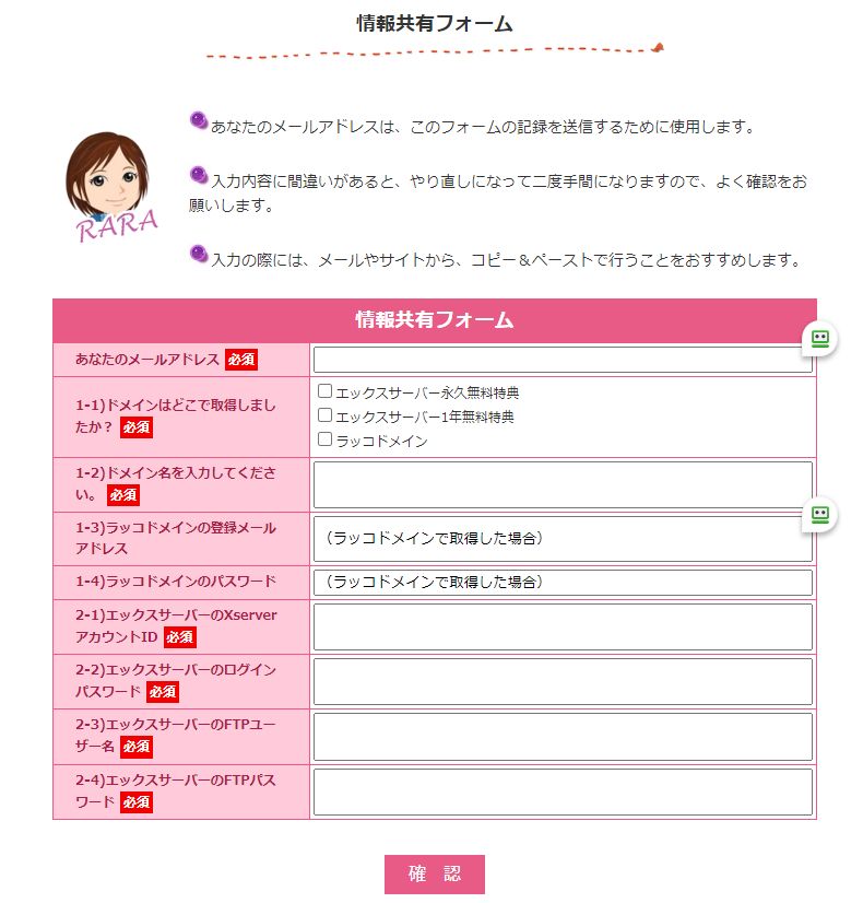 ログイン情報など、一見個人情報に思える内容も共有していただくことになるのですが、これはHP作成を代行するために必要な情報になりますのでご理解ください。