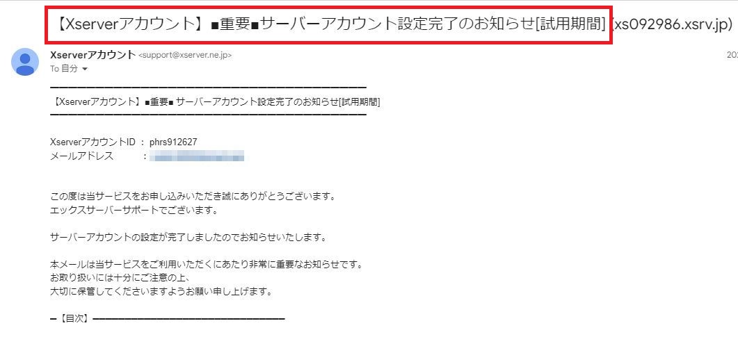 サーバー契約の際にエックスサーバーから届いたメールを用意してください。