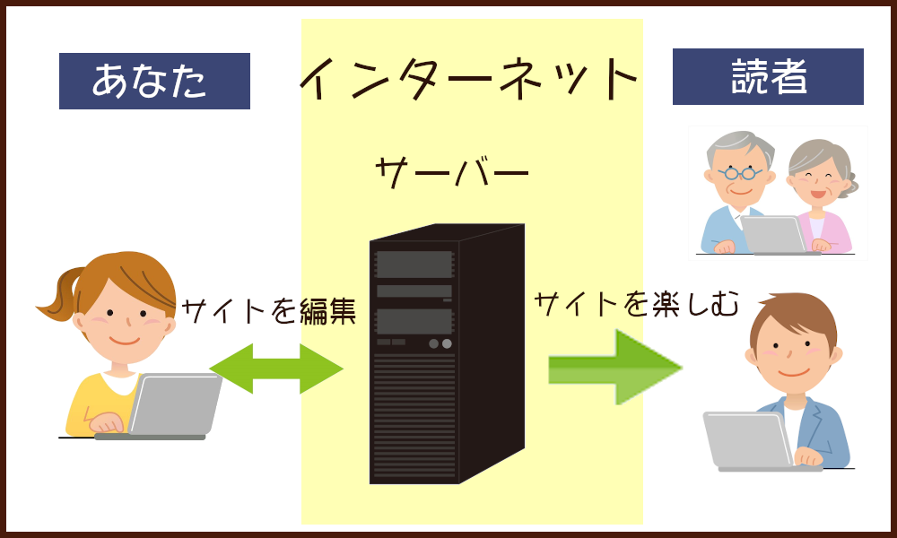 あなたがこれから立ち上げるサイトやホームページも、あなたのパソコンの中にある間は、誰にも見てもらえませんが、サーバーの中に置くことで、世界中からアクセスすることができるようになるんです。