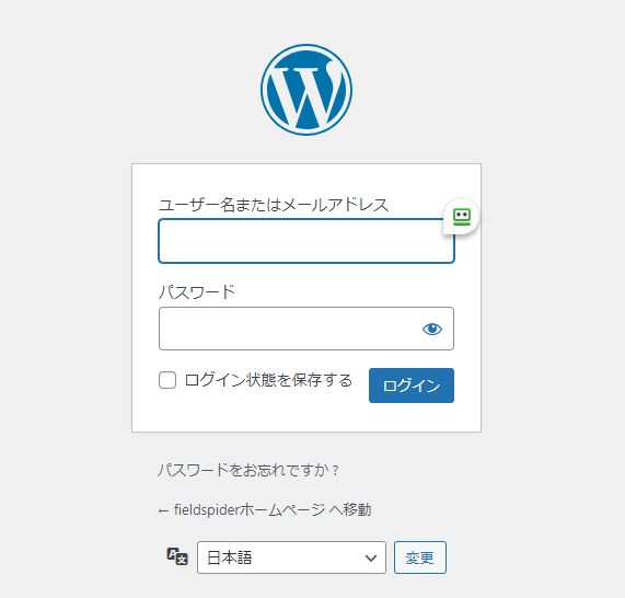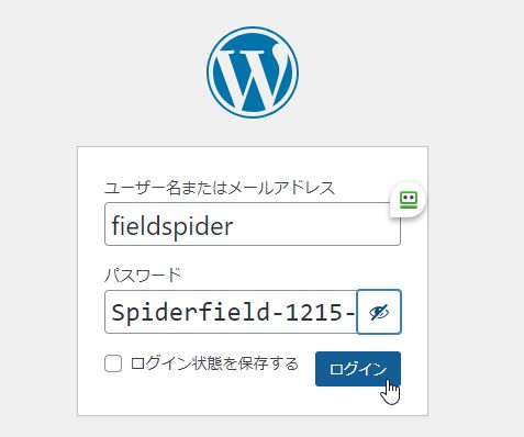 ユーザー名に「fieldspider」、パスワードには「Spiderfield-1215-0117-0609」を入力してログインボタンを押してください。