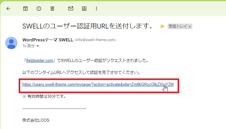 SWELLのユーザー登録をした時のアドレスを入力してボタンを押します。