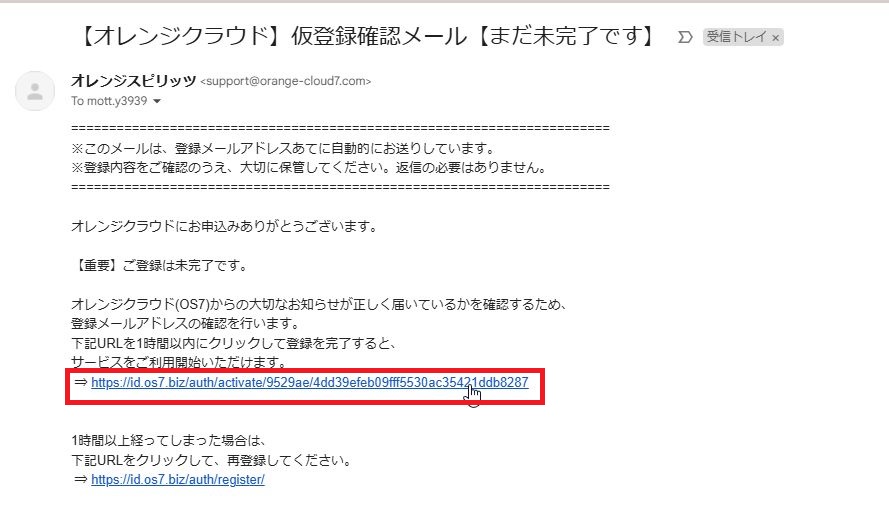 入力したアドレスにメールが届きますので、指定のURLをクリックします。これでユーザー登録は完了です。