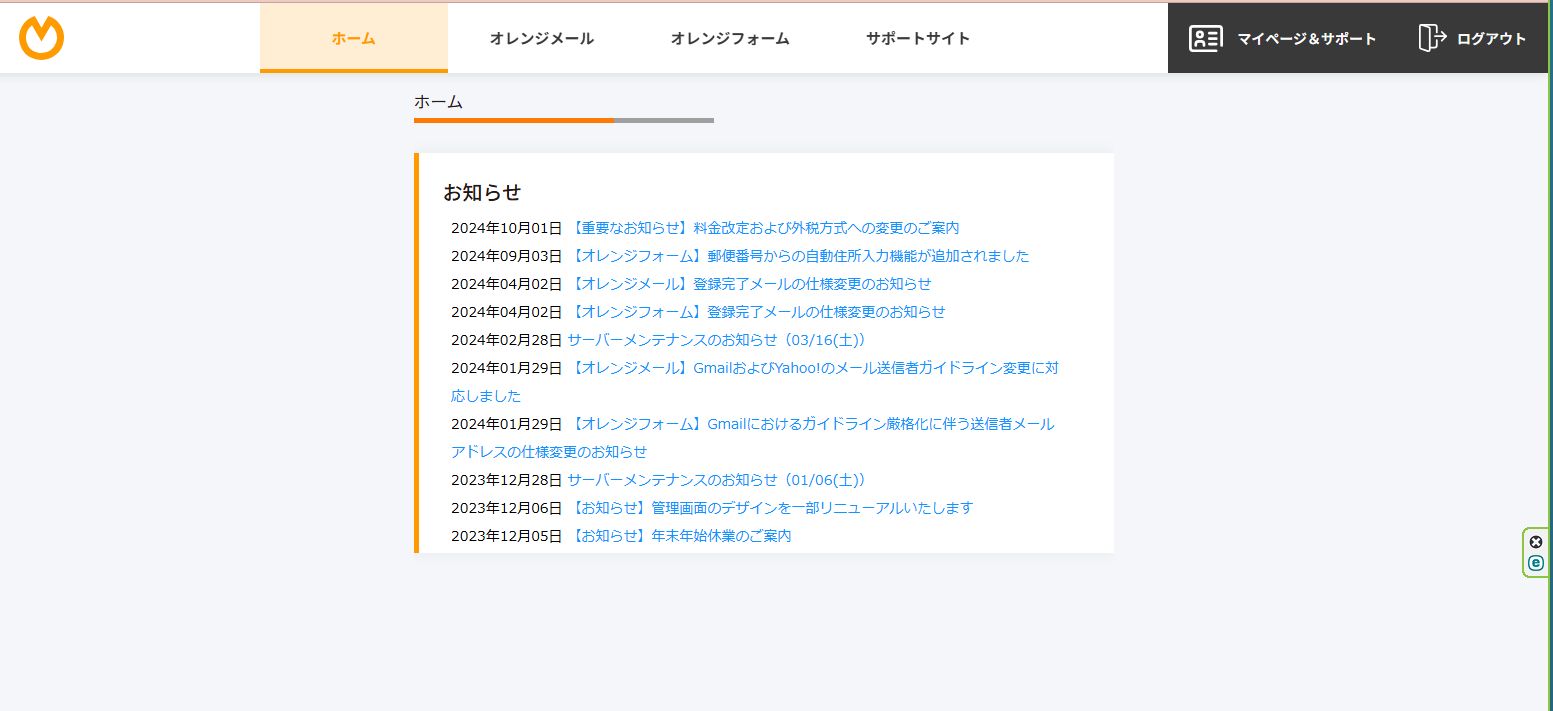 しばらく待ってログインし直しても表記が変わらない場合は、オレンジフォームに問い合わせてください。