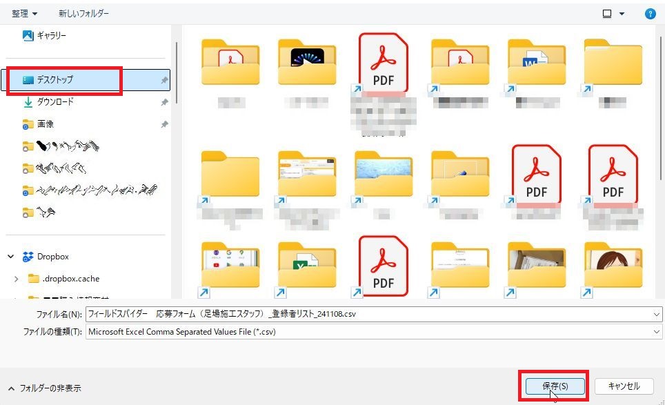 好きなフォルダを選んで保存します。