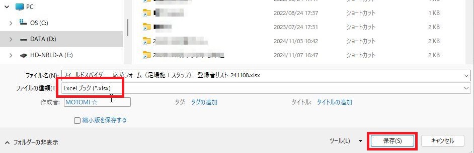 エクセルで開いた場合は、セルの幅などを変更したのち、「.xlsx」(エクセルbookの形)で保存すると扱いやすくなります。
