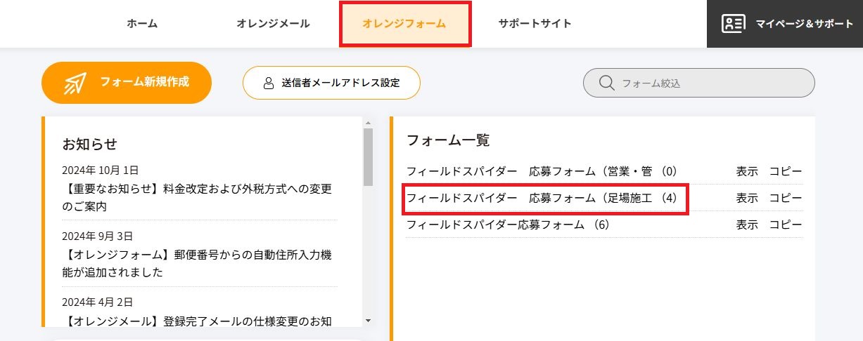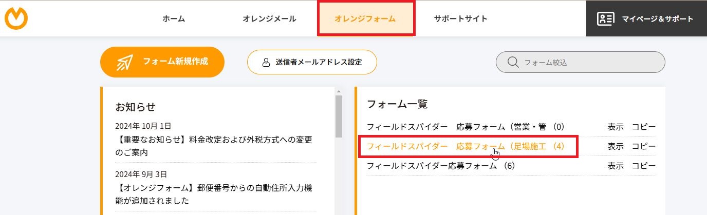 オレンジフォームにログインします。