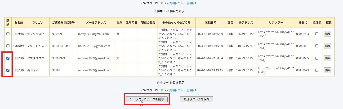 一覧を表示させ、消したいデータにチェックを入れ、削除ボタンを押せば削除が完了します。