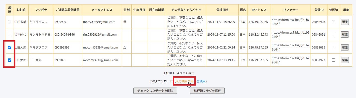 この時必ず「入力項目のみ」を選んでください。「全項目」にすると大量の無関係なデータが入ってきてしまいます。