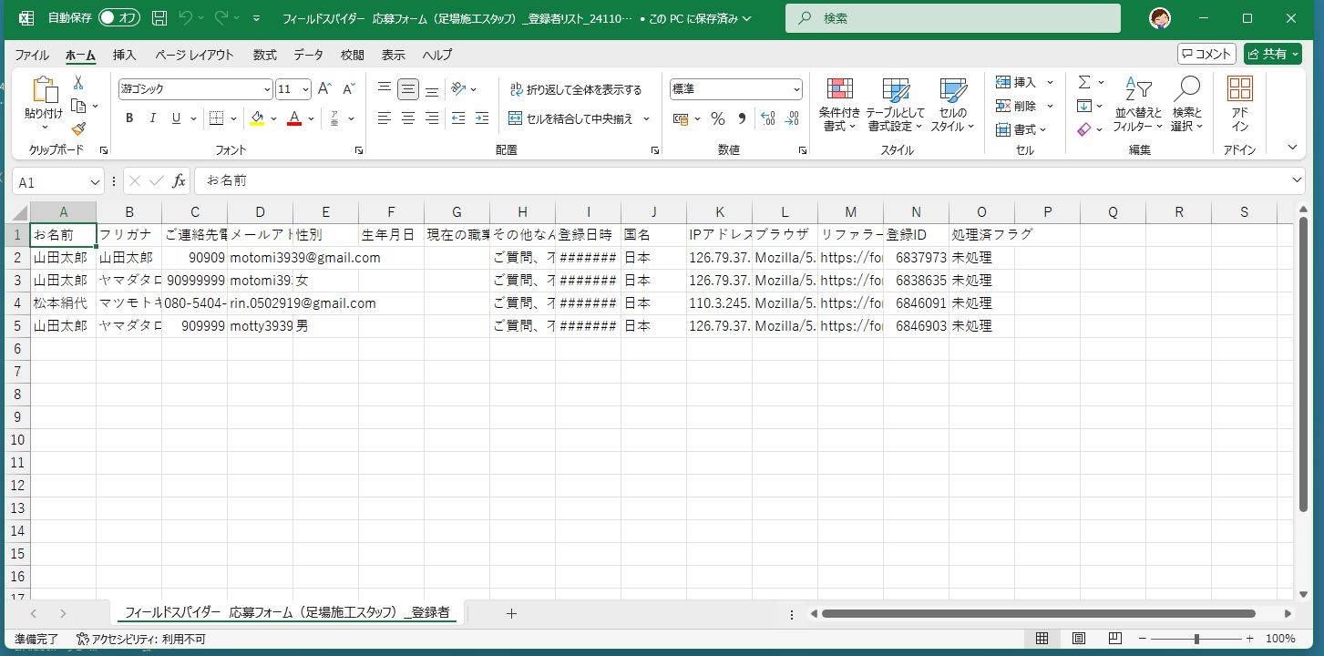 このように、CSVファイルの形でダウンロードされます。