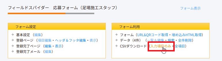 データをダウンロードしたいフォームを選択します。